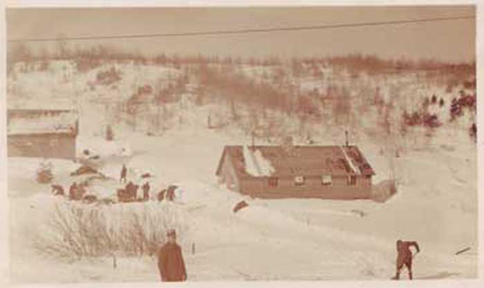 CCC digging out after snowstorm. Camp at Ricker Mills. 1934. |